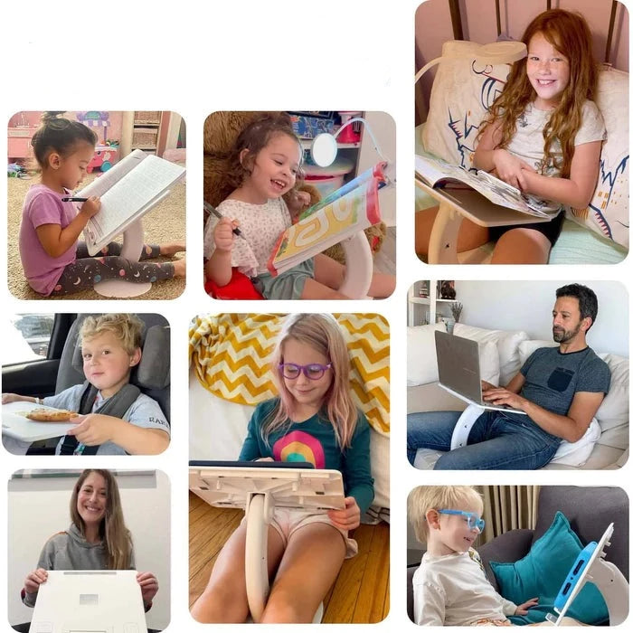 Vi vet alla att barn ogillar att sitta stilla på en plats under en längre tid. Nu kan de enkelt ta med sig sitt portabla knäskrivbord när de byter plats och position. Det blir lättare för dem att känna motivation och vara i gott humör. Skrivbordet är stabilt med en ordentlig yta där de kan studera, spela spel, surfa, läsa och rita med bra fokus under dagens gång.