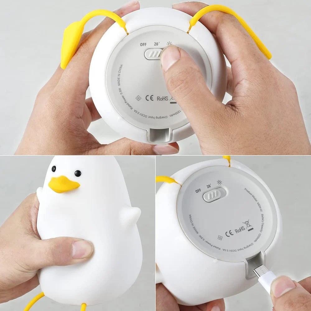 Söt Anka Nattlampa som sprider ett varmt och mjukt sken – perfekt som nattlampa i sovrummet eller som mysig dekoration i vardagsrummet. Den charmiga designen och handhållna storleken gör den till ett älskat tillskott för både barn och vuxna.