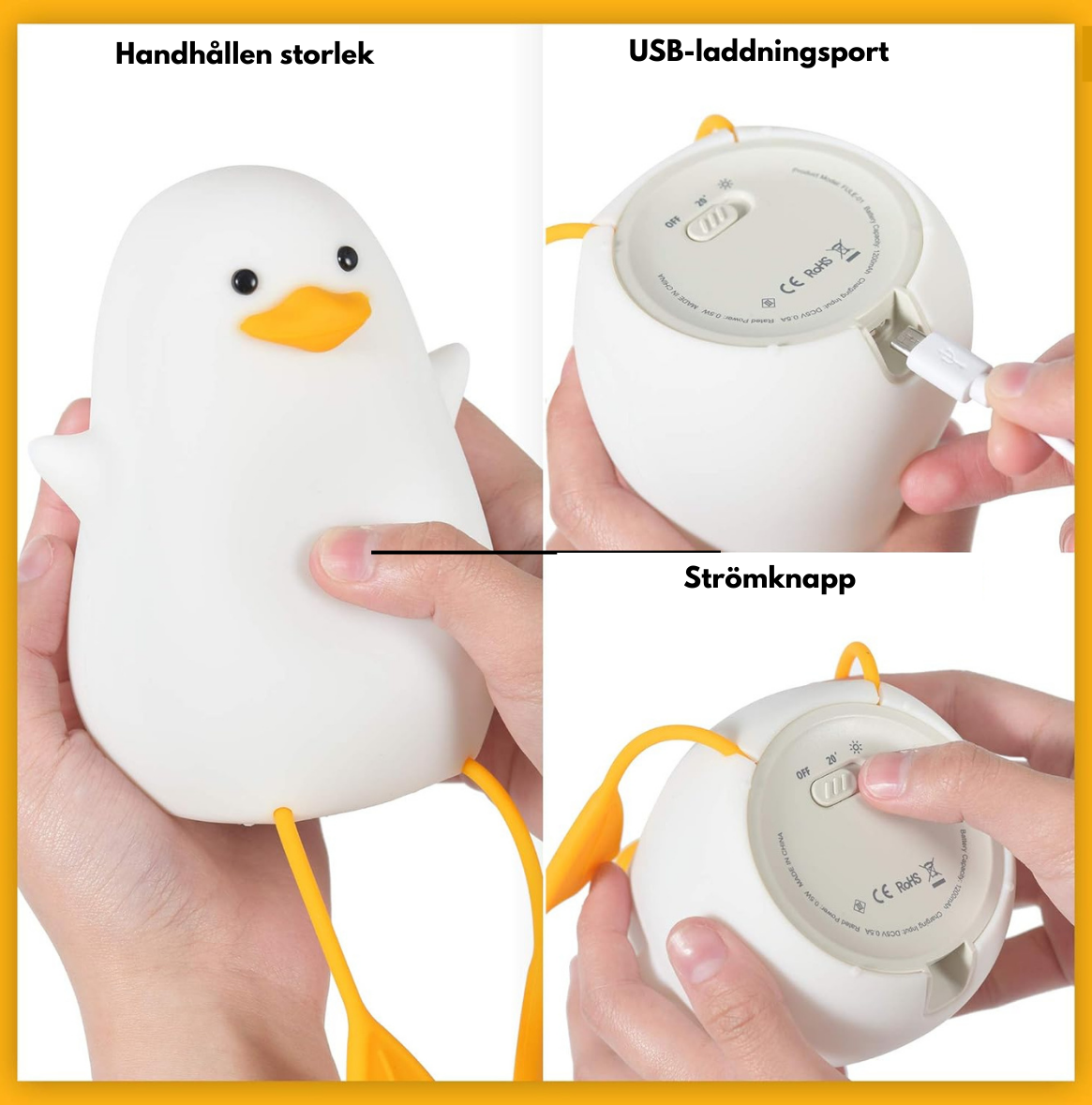 🦆 Söt sällskapsvän med mjukt sken 🌙 Skonsam för ögonen och perfekt som nattlampa 💝 Handplockad designlampa för alla åldrar