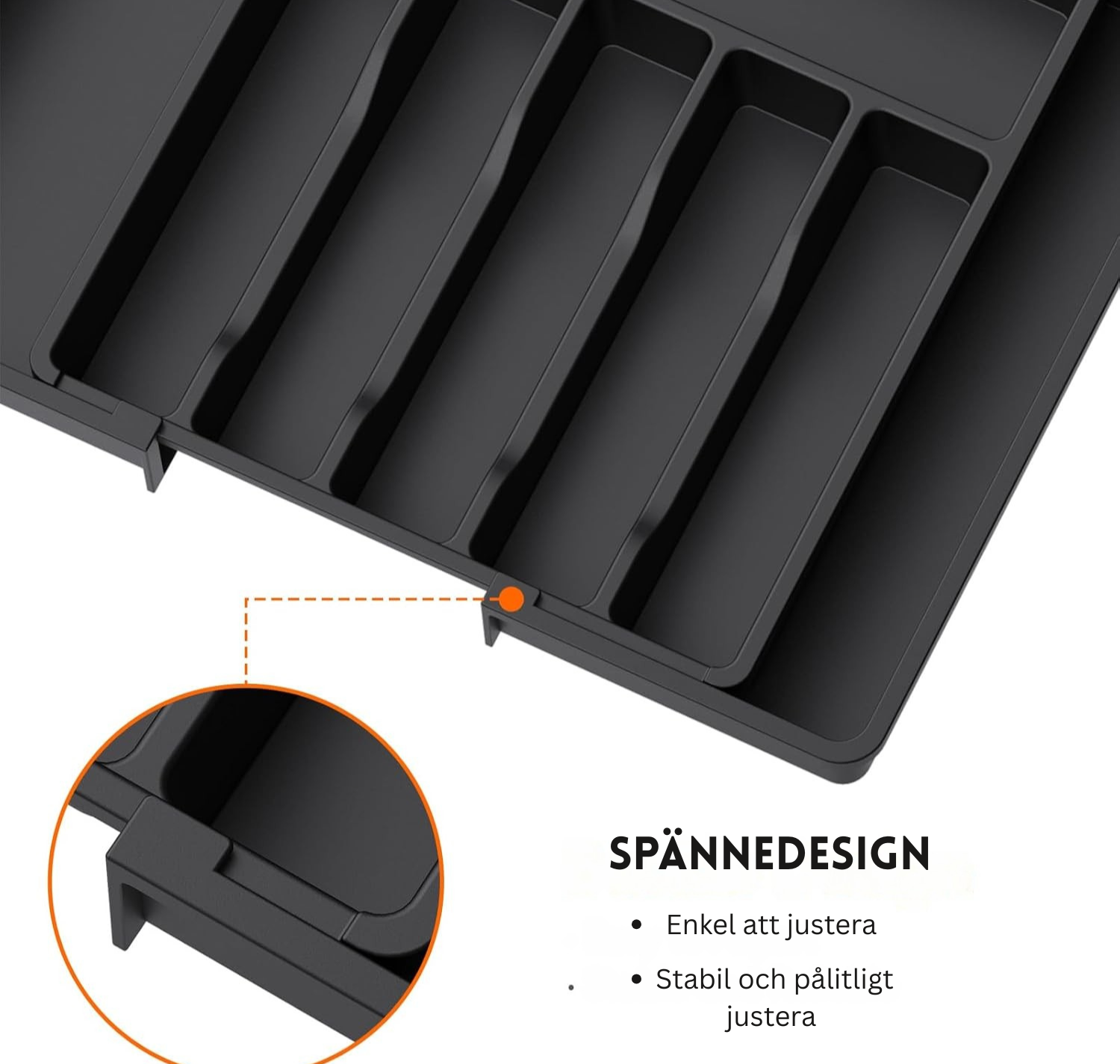 Inget stressar som en rörig kökslåda när man vill bjuda på något gott. Den här eleganta och utdragbara besticklådan hjälper till att skapa ordning och ro, där varje kniv, gaffel och sked har sin plats. En liten detalj som ger en stor känsla av kontroll och glädje.