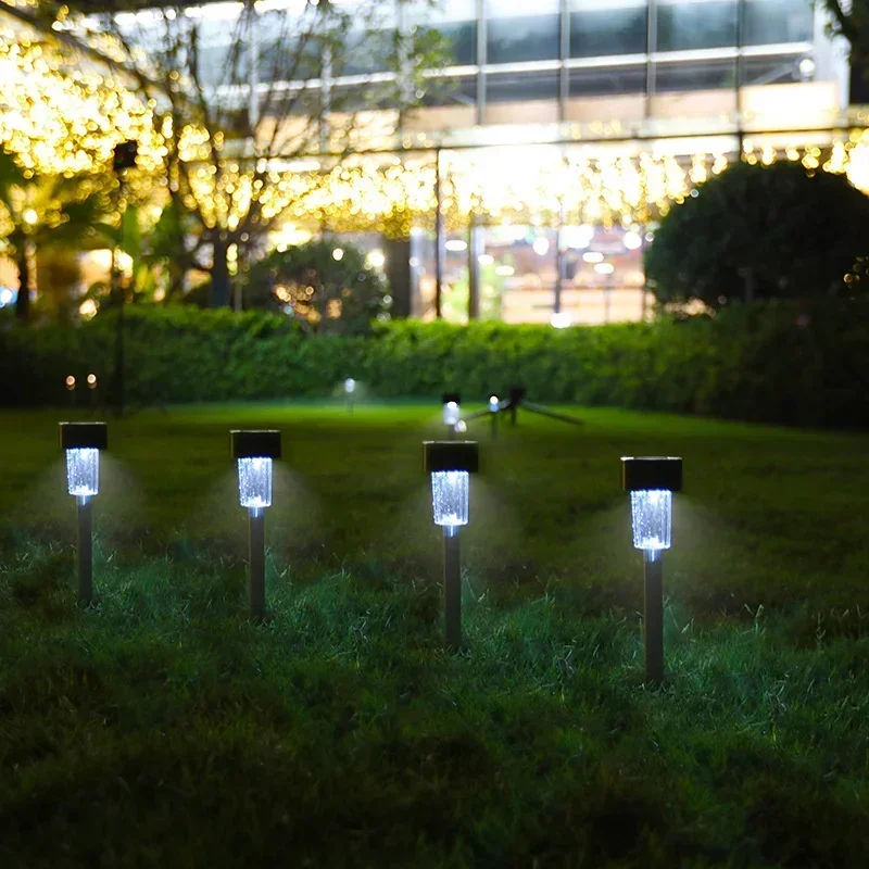 En solcellsdriven utomhuslampa med smal, cylindrisk design och elegant rostfri finish. Den kombinerar effektiv solenergi med en stilren form som ger subtil belysning och modern karaktär till trädgården eller uppfarten.