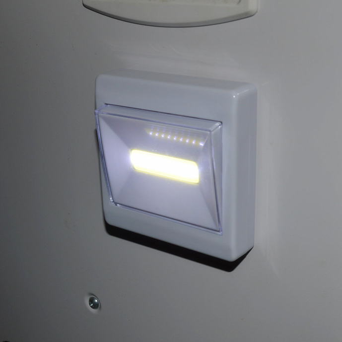Material: ABS (brandsäker) + magnetisk baksida Ljuskälla: COB LED Effekt: 3W Ljusstyrka: 300 lumen Strömkälla: 3 x AAA-batterier (ingår ej) Mått: Ca 86 x 86 x 20 mm Vikt: Ca 75 g