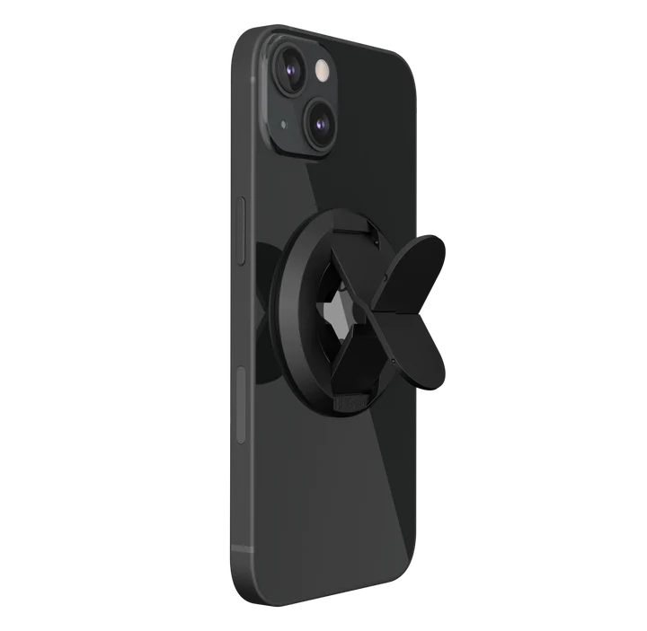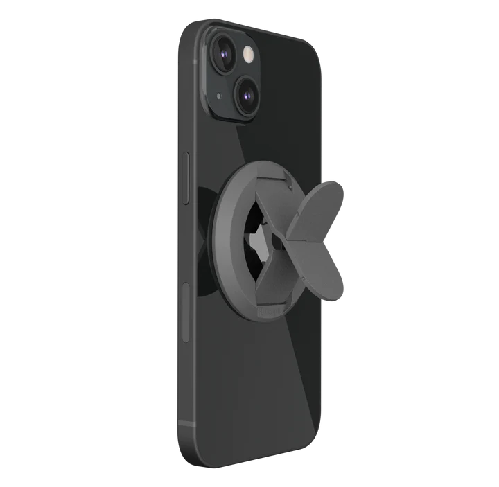 Flip Grip – Mobilhållare med 360° rotation som kombinerar stilren design med praktisk funktion. Den ergonomiska konstruktionen ger ett säkert grepp samtidigt som du kan använda den som stativ för handsfree-visning. Perfekt balans mellan komfort, flexibilitet och minimalism.