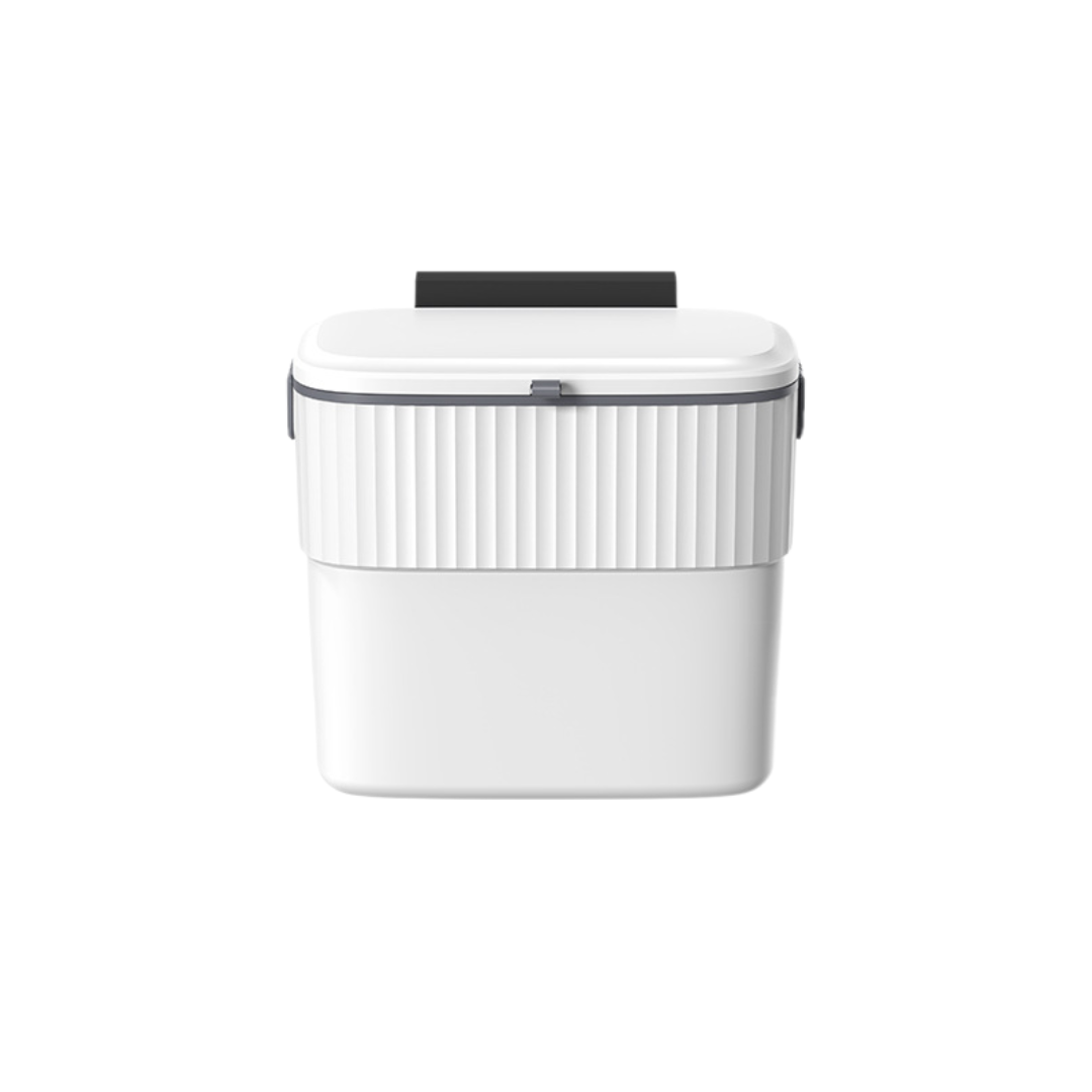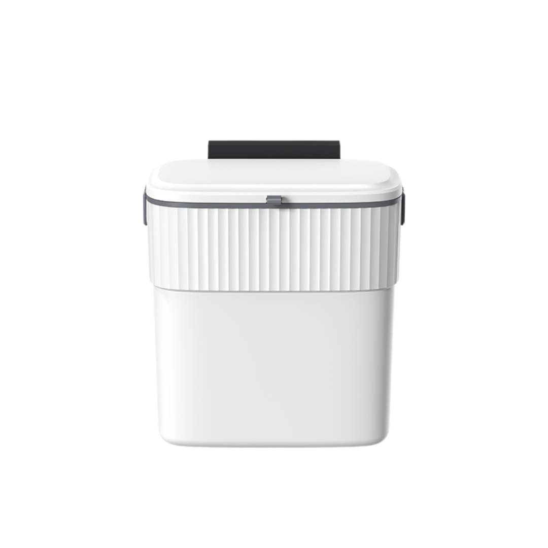 En upphängd avfallsbehållare som kombinerar snygg design med praktisk funktion. Med ett tättslutande skjutlock och smart upphängning på skåpsluckor håller den köket rent, luktfritt och organiserat.
