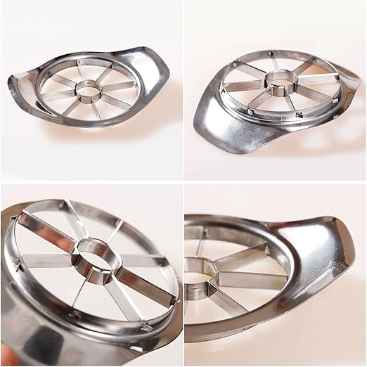 Äppelskärare i rostfritt stål som kombinerar precision och enkelhet. Med ett enda tryck delar du frukten i perfekta, jämna klyftor – snabbt, säkert och utan kladd. Den eleganta designen gör den till ett måste i varje modernt kök.