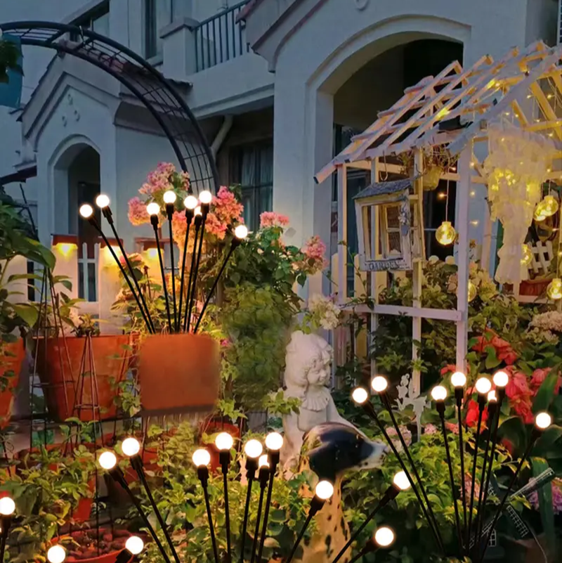 Solcellsdrivna LED-ljus med flexibla stålgrenar som formar sig mjukt i vinden och skapar ett förtrollande, lysmaskliknande sken. Den minimalistiska designen kombinerar funktionalitet med modern estetik, perfekt för trädgårdar, gångar och uteplatser.