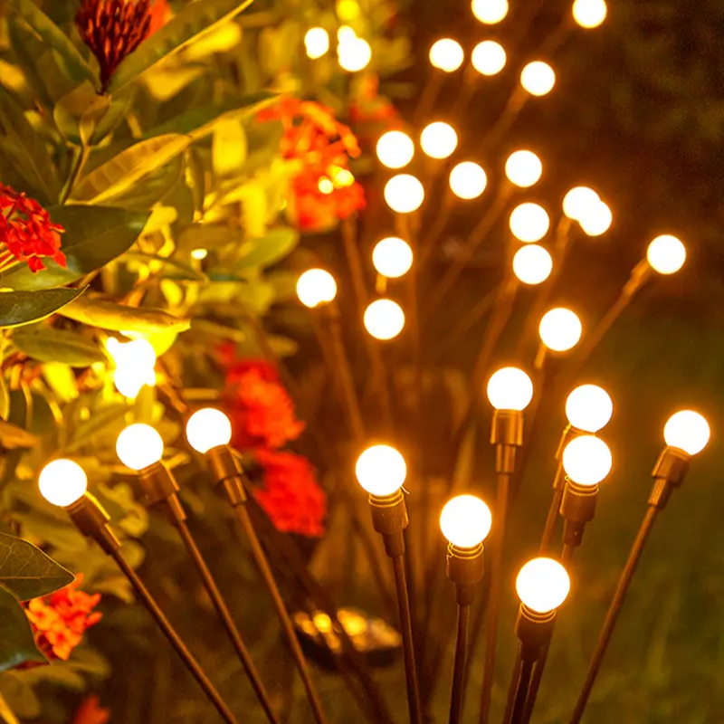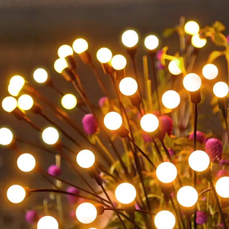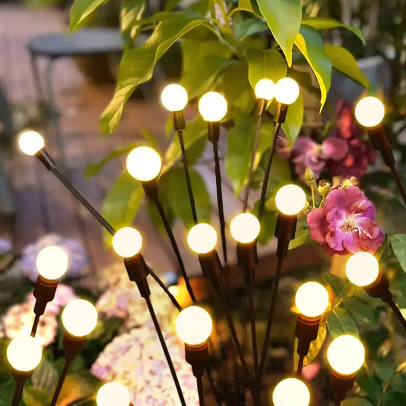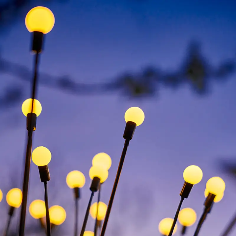 Dessa solcellslampor har slanka, böjbara stålstammar som skapar en svävande, lysmaskliknande form. Varje gren är noggrant formad för mjuka kurvor och enkel justering i utomhusmiljöer.