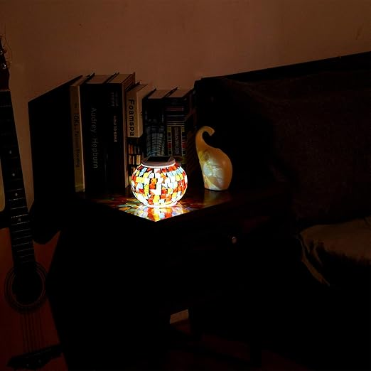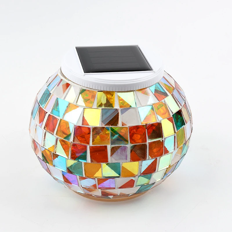 Solcellsbaserad mosaikgloblampa som kombinerar elegant hantverk med modern solteknik. Dess färgskiftande belysning och handgjorda glasdetaljer skapar en förfinad atmosfär för trädgårdar, uteplatser eller balkonger.