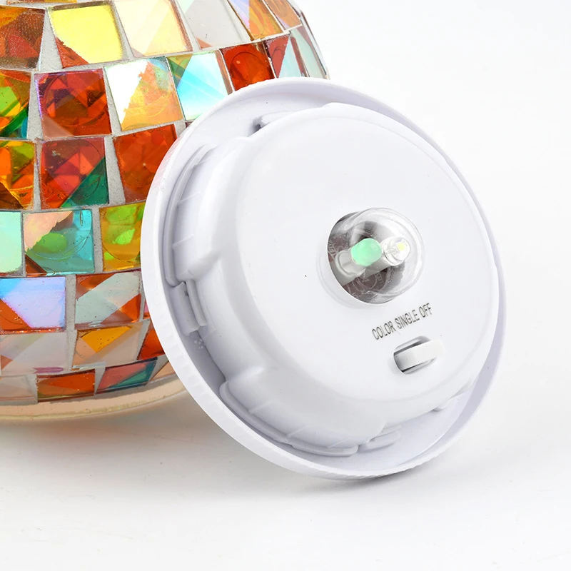 Varje glob är tillverkad av keramik och mosaikglas och får ett unikt mönster av skimrande fragment. De noggrant placerade bitarna fångar och reflekterar ljuset och framhäver hantverket i det traditionella handlagda mosaikarbetet.