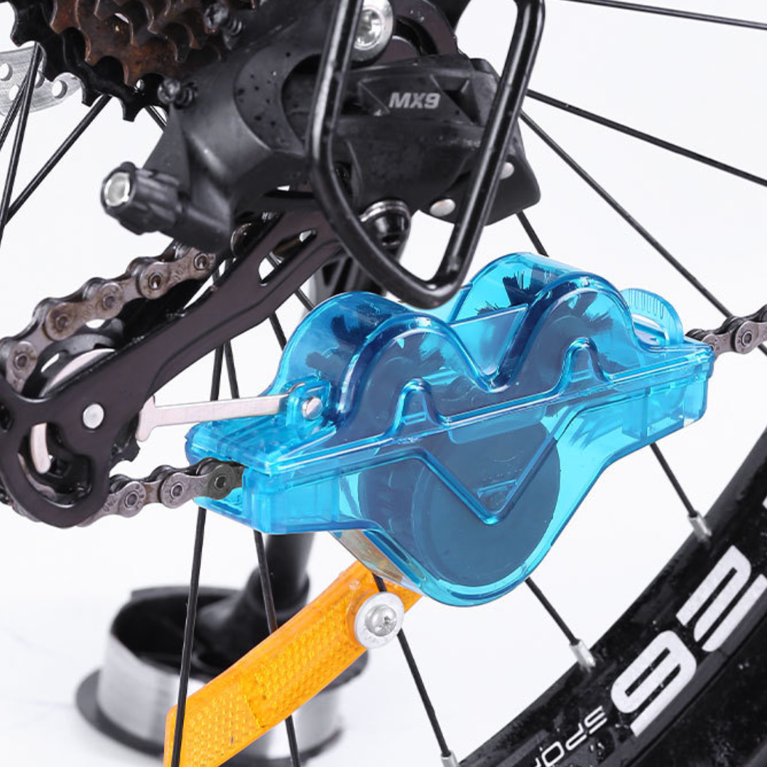 Detta verktyg har ett rent, modernt utseende med ett transparent hölje som visar hela borstlayouten inuti. Den interna banan använder flera roterande borsthuvuden som är utformade för att komma i kontakt med kedjan från alla vinklar.